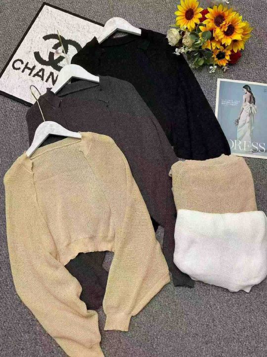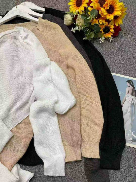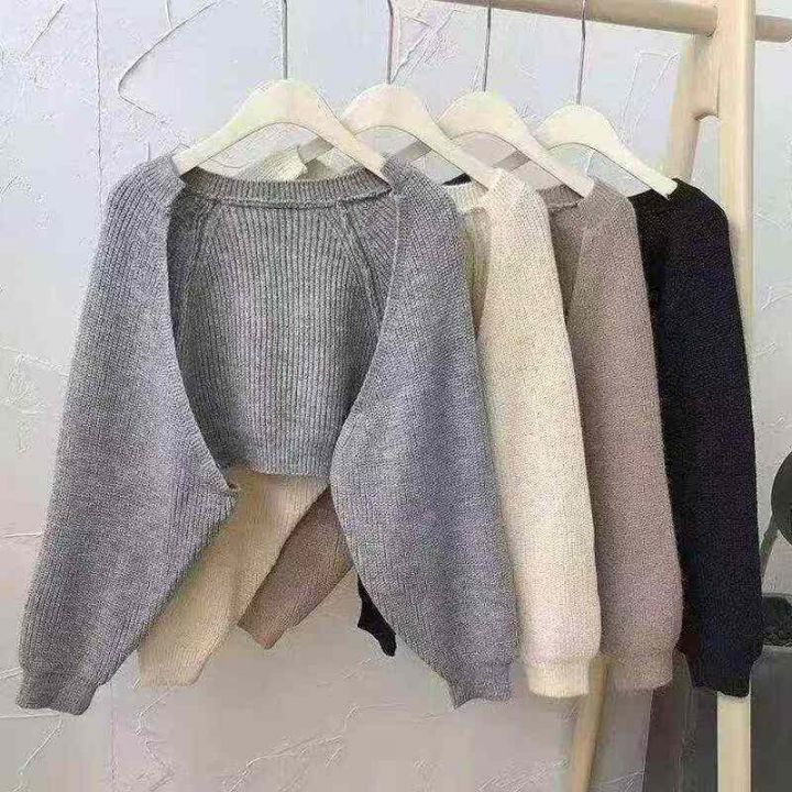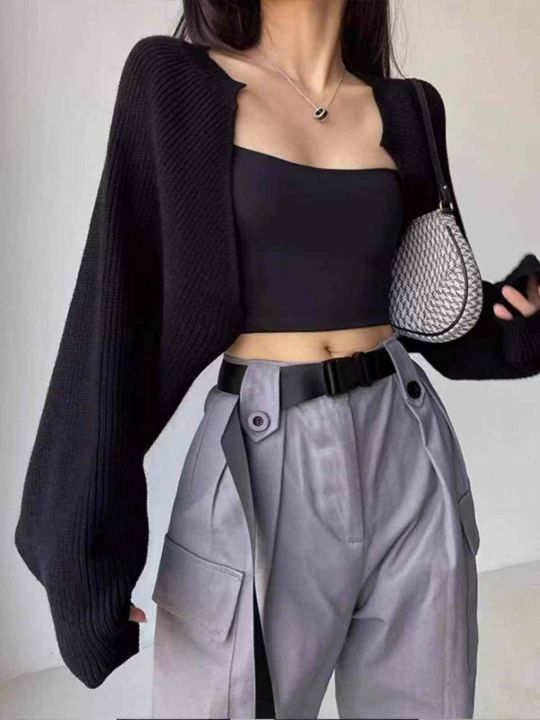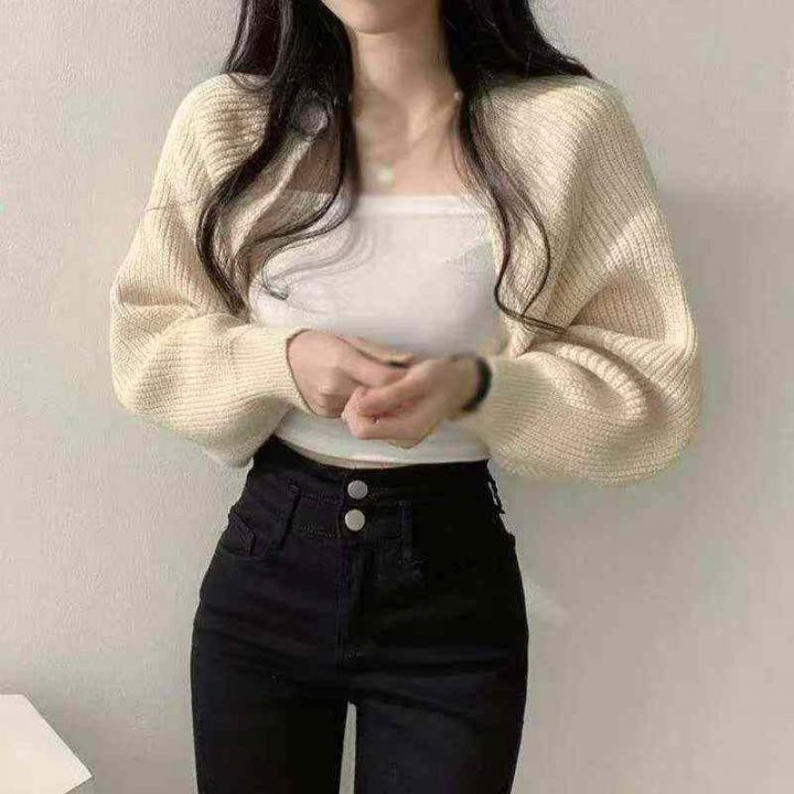 春季新款慵懒chic法式小众气质灯笼袖短款蝙蝠毛衣开衫...
