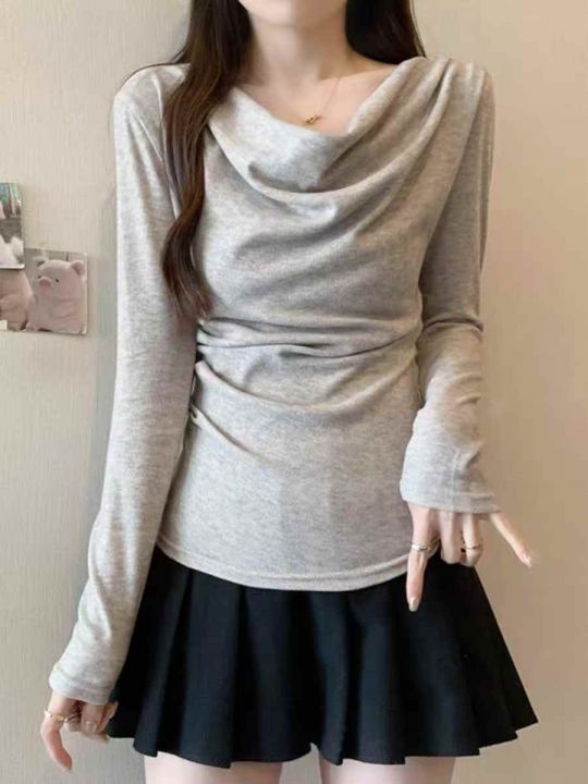 全清价5.8法式荡领辣妹长袖修身显瘦薄绒内搭打底衫上衣,独立包装,整款三...