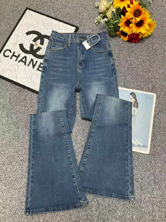 春季新款网红复古高弹力洗水棉微喇叭牛仔裤,独立包装...