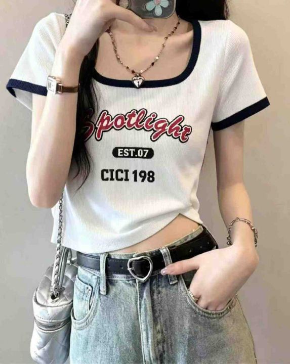 夏季新款老弟性感个性撞色美式复古字母印花方领针织T桖,独立包装,均码面料柔软舒适弹力大,252件,全清5.9元超低价秒杀!分货加一!