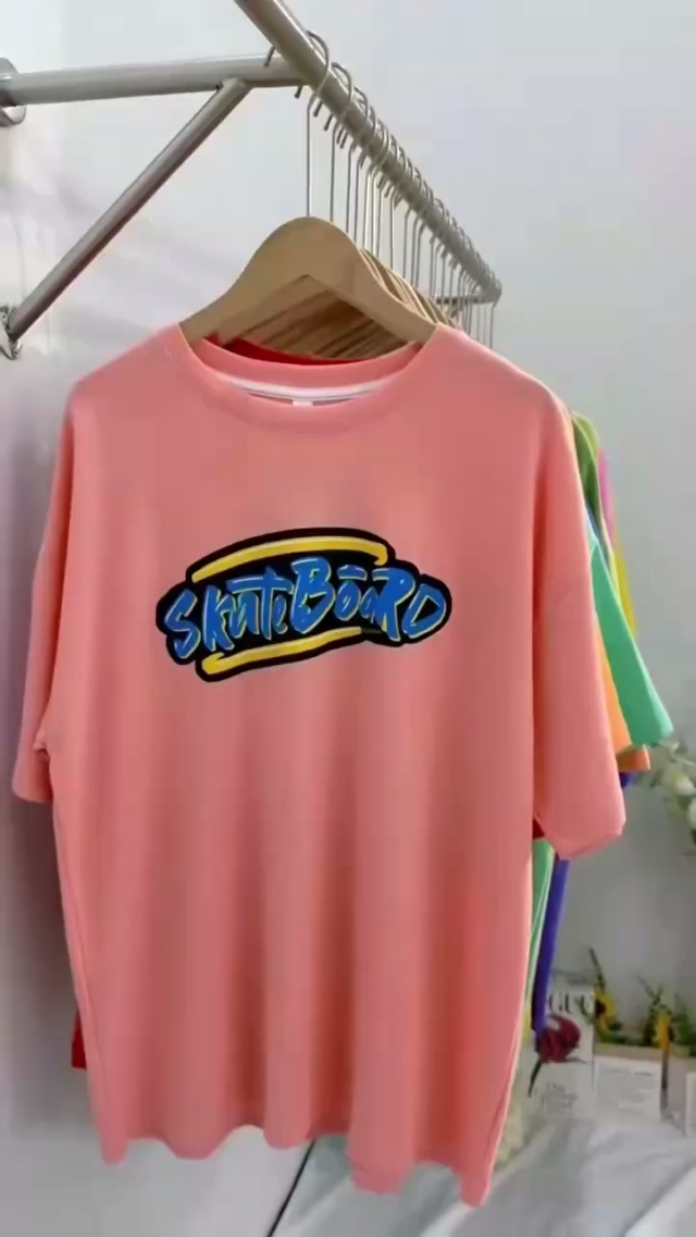 韩系纯棉印花大版宽松落肩体恤,均码大板型 全部独立拉丝袋包装,带吊牌,...