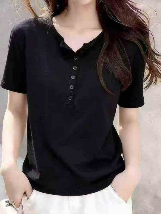 ☆5.8元,粗条冰丝辣妹T,夏季韩版修身短袖排扣靓妹T恤,透气舒适,150件,1-4码,独立包装吊牌,全清5.8元,不分货