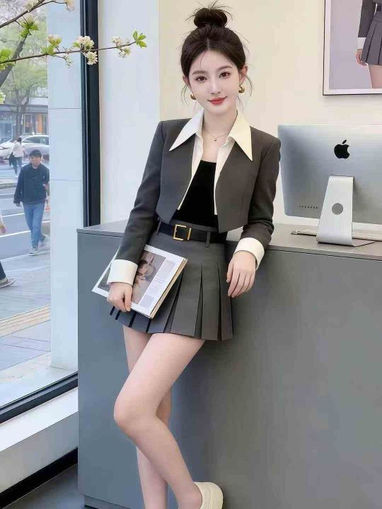 设计感气质减龄假两件套西服学院风百褶裙短裙套装,含皮带,独立包装,整款两色,码数1/2/3/4/6,数量219套
