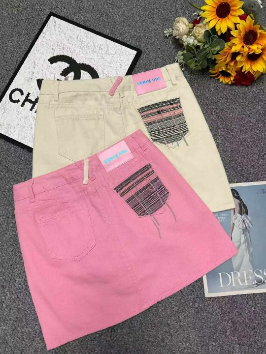 夏季新款复古刺绣撞色后袋设计款牛仔半身短裙,独立包...