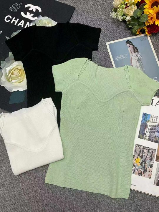夏季新款网红法式气质弹力修身显瘦辣妹针织小衫,独立...