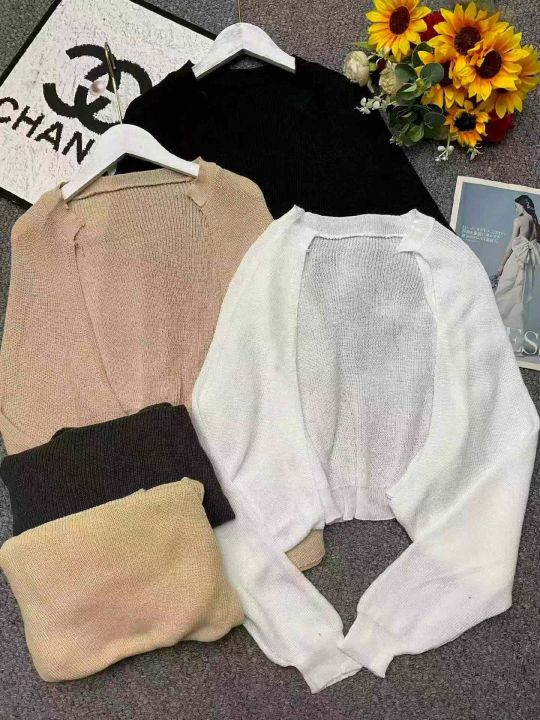 春季新款慵懒chic法式小众气质灯笼袖短款蝙蝠毛衣开衫...