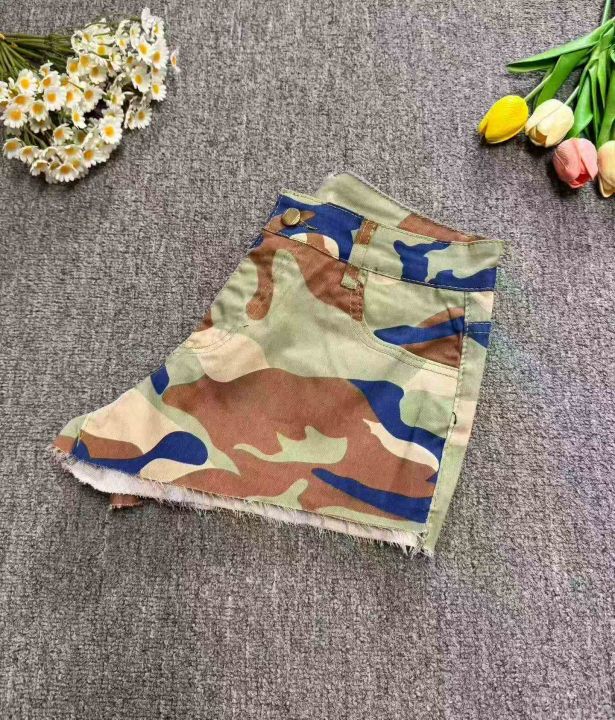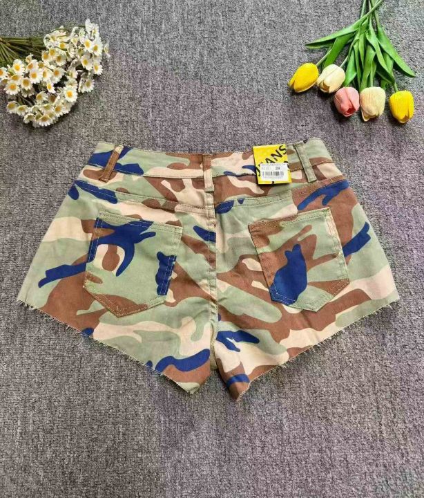 洋气潮流辣妹迷彩牛仔短裤,有弹力品质好,有独立包装...