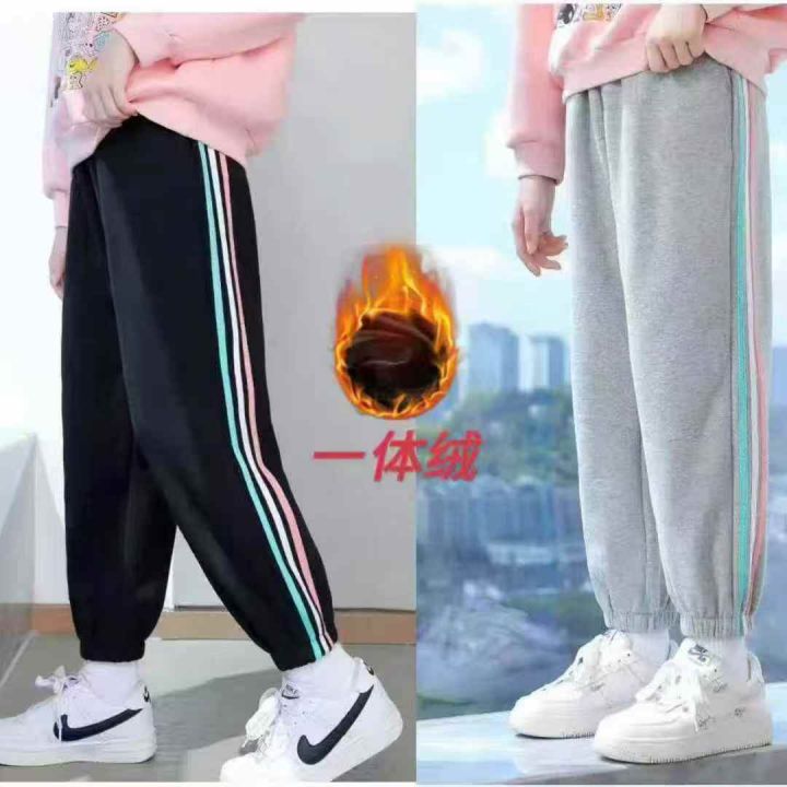 505件男女中大童秋冬加绒加厚裤儿童休闲运动裤洋气卫裤一体绒束脚裤 单款两色,码数120-150 独立包装。