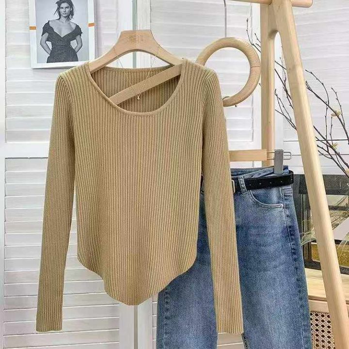 春秋新款网红设计感小众不规则洋气弹力修身显瘦坑条包芯纱套头毛衣,独立包装,均码面料软糯舒适,3800件,全清6.9元超低价秒杀!分货加一!