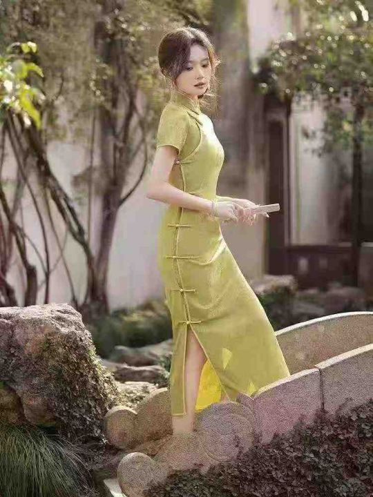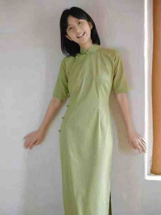 民国复古设计感半开襟长款旗袍女,[爱心]90件左右,码数S-2XL,穿70斤-140斤,万佳档口货,原包装️无瑕疵,实体店品质