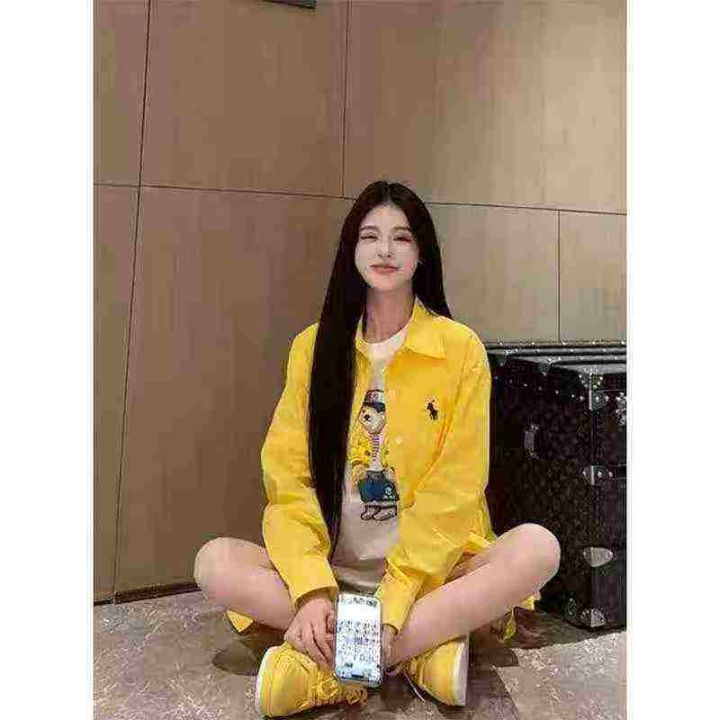 韩版休闲刺绣黄色衬衫外套470件8.9,宽松版型,刺绣小...