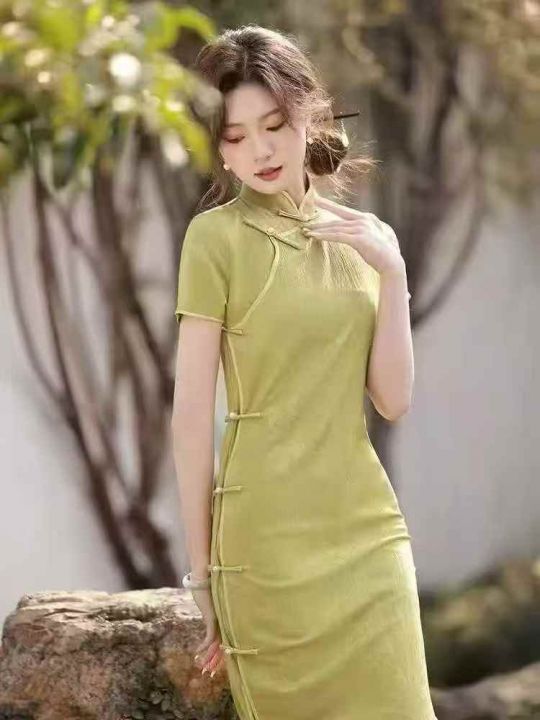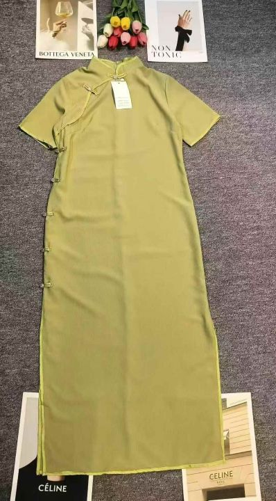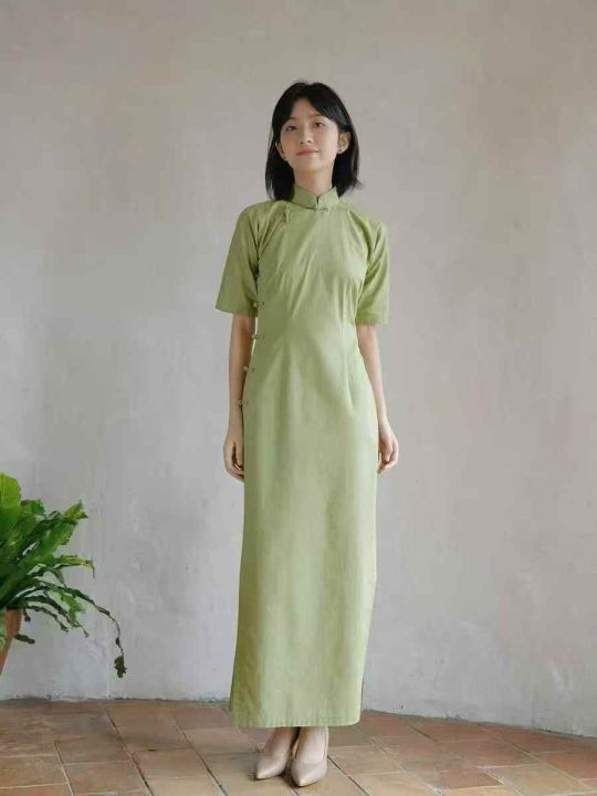 民国复古设计感半开襟长款旗袍女,[爱心]90件左右,码数S-2XL,穿70斤-140斤,万佳档口货,原包装️无瑕疵,实体店品质