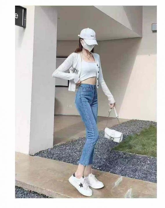 #Lady jeans wholesale弹力高腰微喇叭牛仔裤 修身款水洗棉长裤,数量1590条...