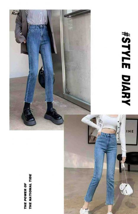 高弹力烟管直筒牛仔裤女夏季新款显瘦烟管九分牛仔裤32...