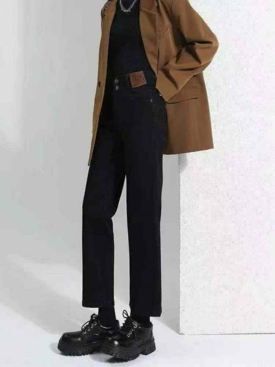 高弹力直筒牛仔裤女新款高腰显瘦修身百搭九分烟管裤18...