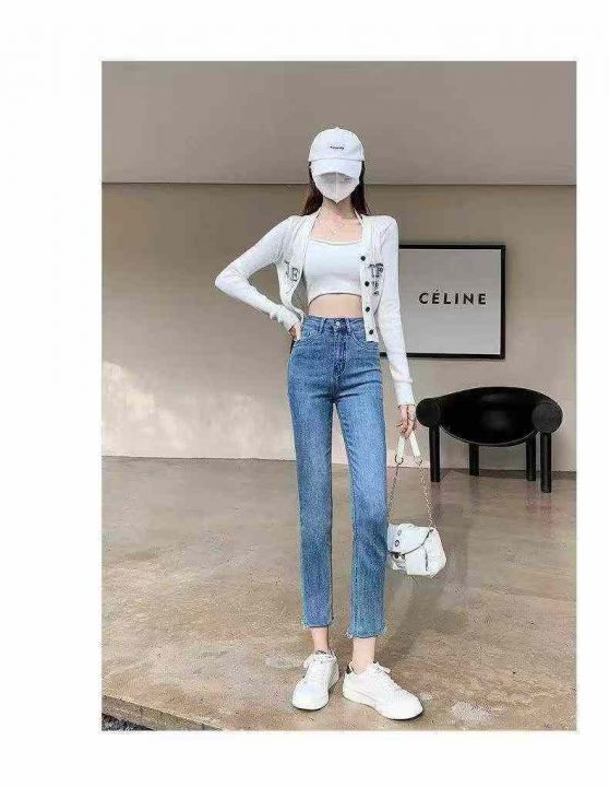 高弹力烟管直筒牛仔裤女夏季新款显瘦烟管九分牛仔裤32...