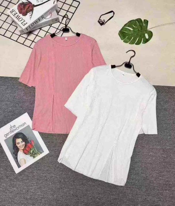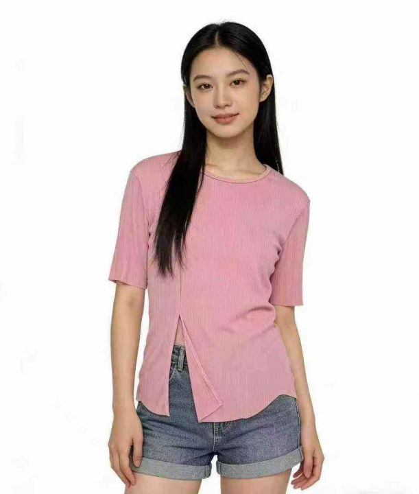 冰丝螺纹短袖,分叉下摆设计,整款两色,独立包装