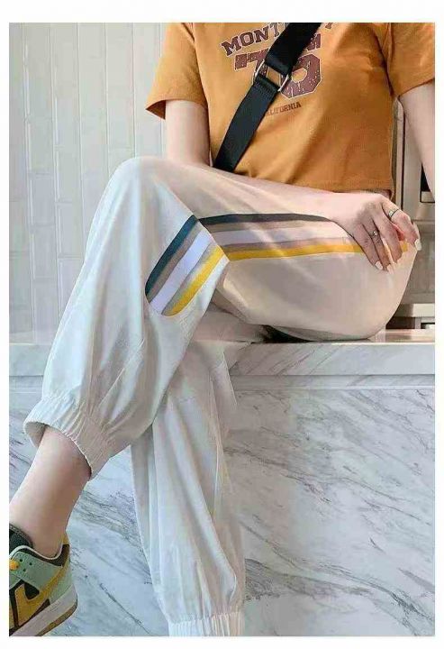 运动裤女夏季薄款2026新款时尚洋气侧边条纹抽绳束脚休闲裤 数量:682条 码数:1-7码 分货➕1独立包装(货号331#69)