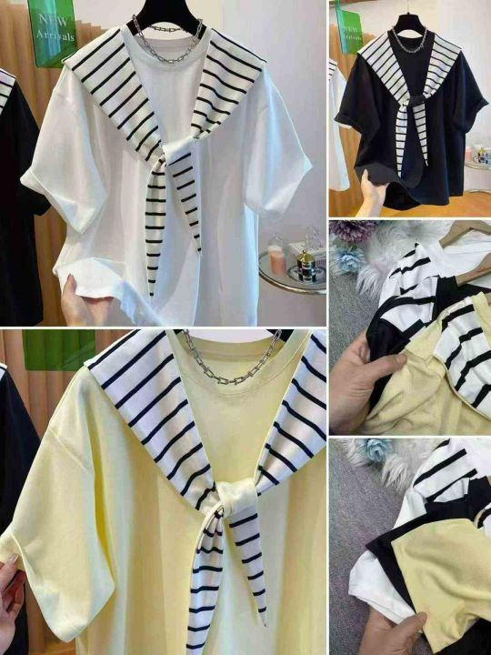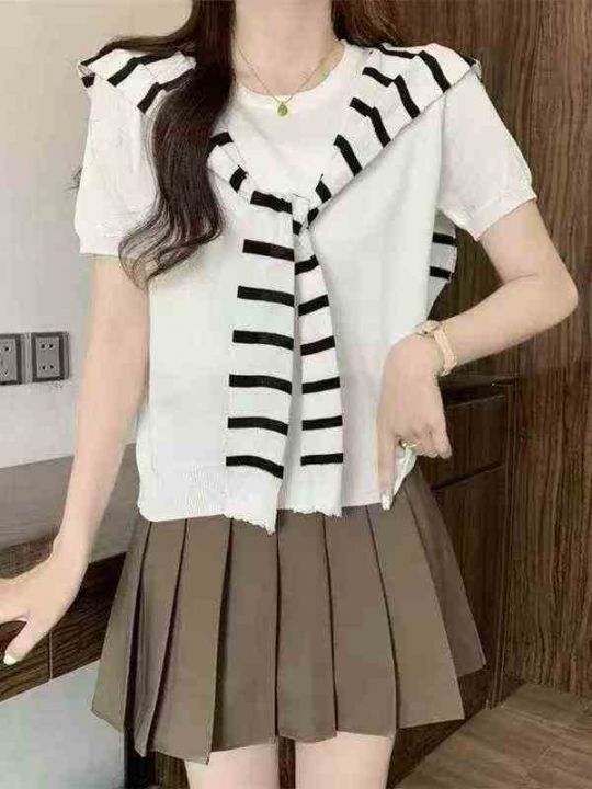 全清价5.9设计感条纹 短恤T恤女夏宽松显瘦通勤风上衣2...