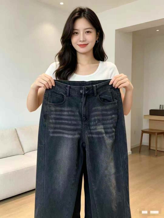 1000条美式复古高街风做旧直筒黑灰阔腿牛仔裤,质量好...