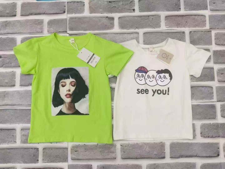 同一品牌小整中小童童装T恤 数量495件左右 尺码7-9-13 带有弹力 同一品牌 独立包装带吊牌 货品干净整洁