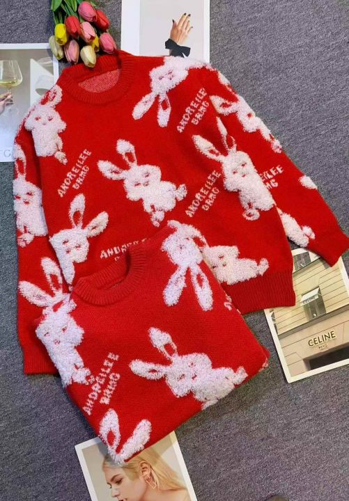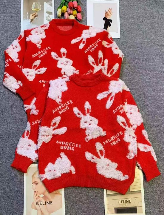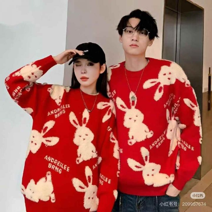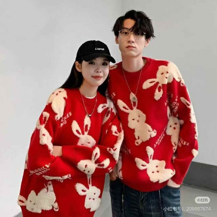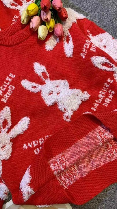 慵懒风喜庆男女同款红色针织毛衣,[爱心]1050件左右,款号#1171,均码,穿70-140斤,万佳档口货,原包装️无瑕疵,[666]实体店品质,分货加一