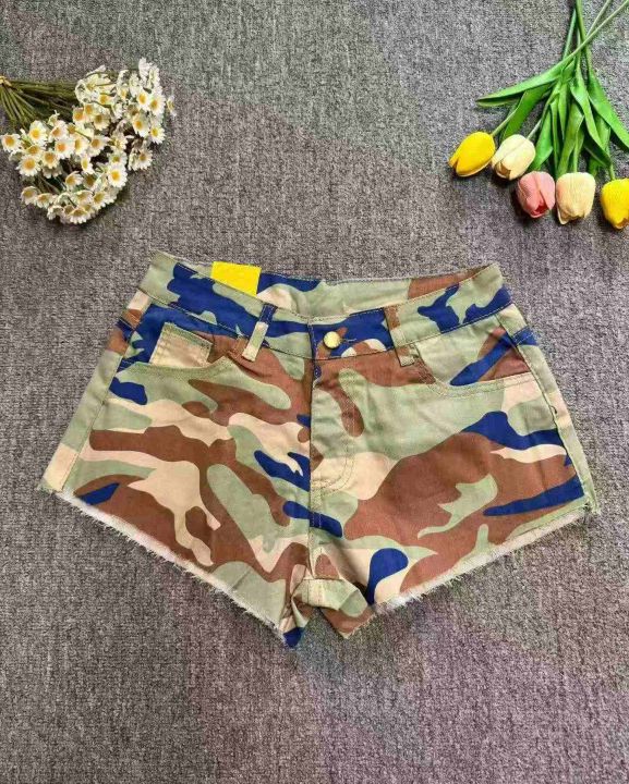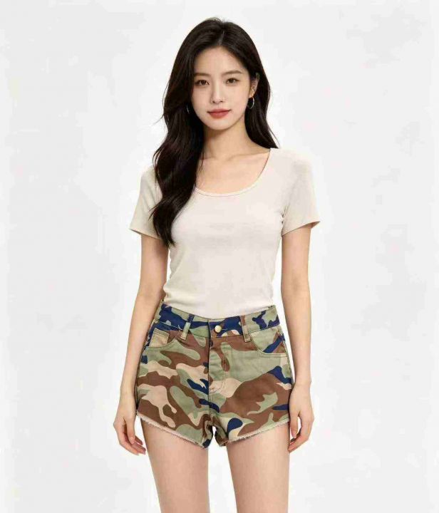 洋气潮流辣妹迷彩牛仔短裤,有弹力品质好,有独立包装...