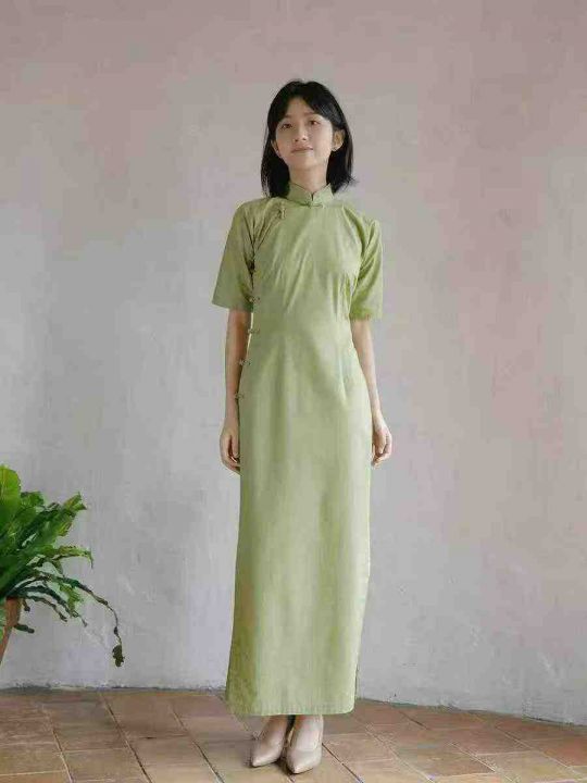 民国复古设计感半开襟长款旗袍女,[爱心]90件左右,码数S-2XL,穿70斤-140斤,万佳档口货,原包装️无瑕疵,实体店品质