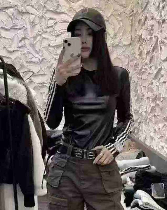 ☆5.8元,粗条冰丝辣妹T,夏季韩版修身短袖排扣靓妹T恤,透气舒适,150件,...
