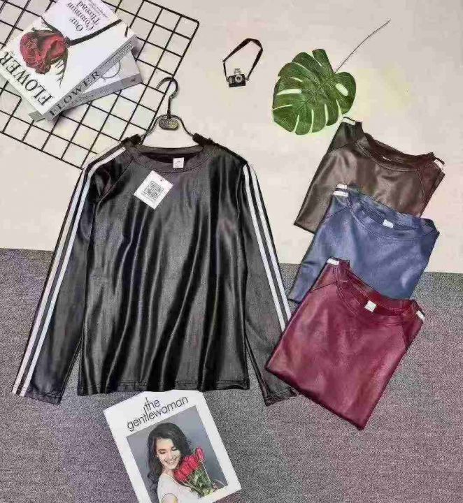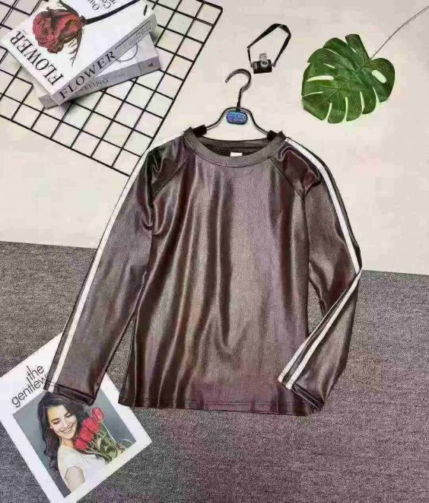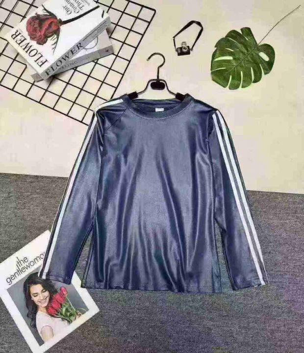 女款亮面圆领拼色长袖T整款4色 1-3码(S-L)460件 清...