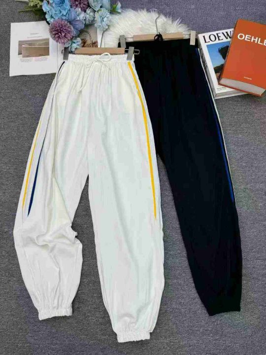 运动裤女夏季薄款2026新款时尚洋气侧边条纹抽绳束脚休闲裤 数量:682条 码数:1-7码 分货➕1独立包装(货号331#69)