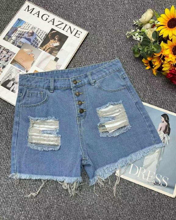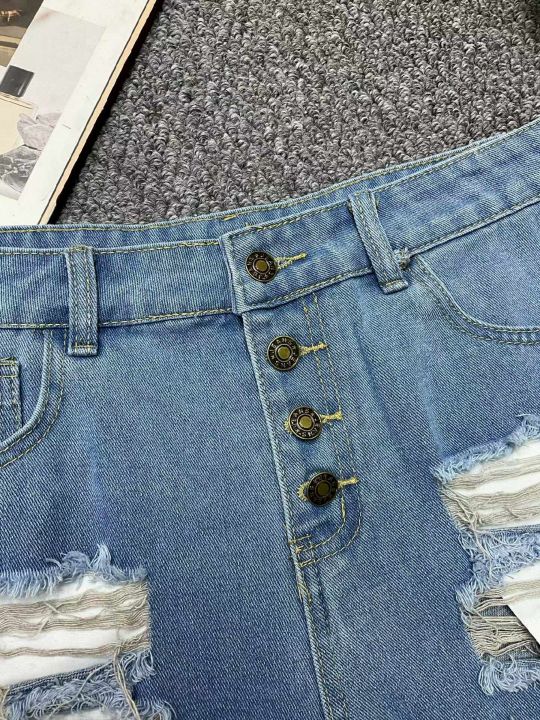 夏季新款品牌外贸原单美式宽松多扣设计款毛边牛仔短裤...