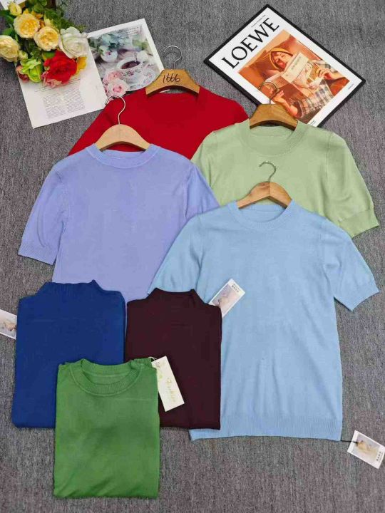 电商仓回收842件韩系知性温柔风针织短袖上衣,码数S-3XL。手感软糯,面料柔软舒适。独立包装,分货➕0.5