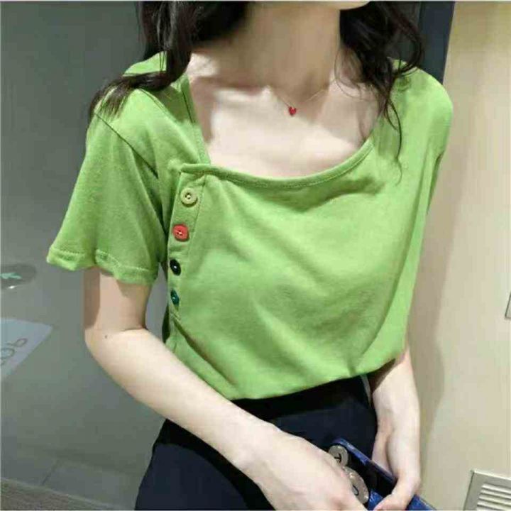 不规则短袖65棉t恤女夏新款韩版ins潮学生泫雅风宽松百搭半袖上衣,261件,...