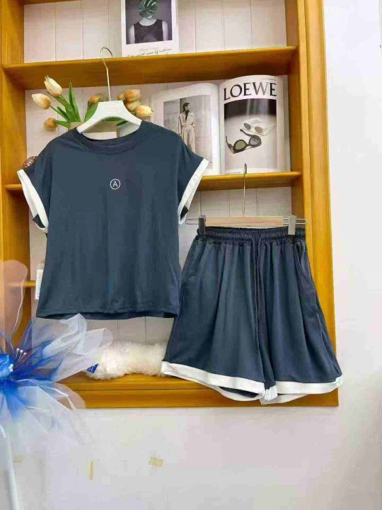 时尚休闲套装女夏季小个子韩版短袖短裤两件套!两个整...