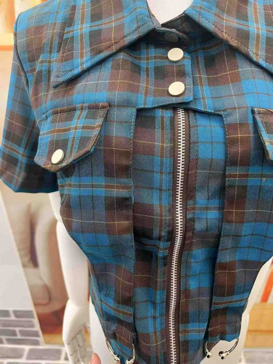 102件格子短款辣妹上衣,独立包装,码数S-XL,质量非常不错!