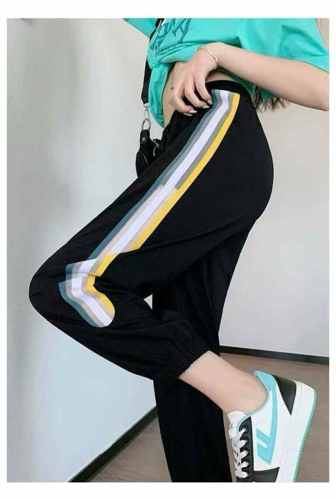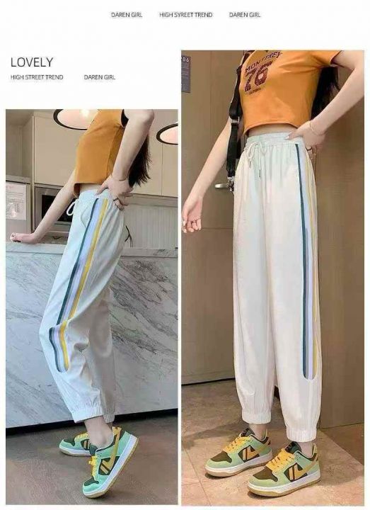 运动裤女夏季薄款2026新款时尚洋气侧边条纹抽绳束脚休闲裤 数量:682条 码数:1-7码 分货➕1独立包装(货号331#69)