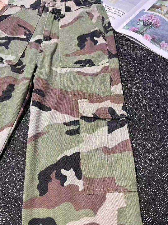 男女同款迷彩工装阔腿牛仔长裤 92件全清14.8元,不分...