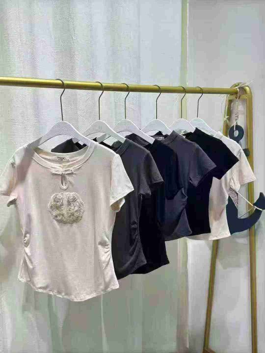 新中式国风刺绣盘扣纯棉短袖T恤女装夏季气质设计感修身显瘦短款上衣,(刺绣跟净色差不多各半)数量1440件,码数s-xl,独立包装,全清7.8,分货+0.5元