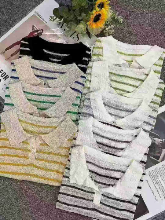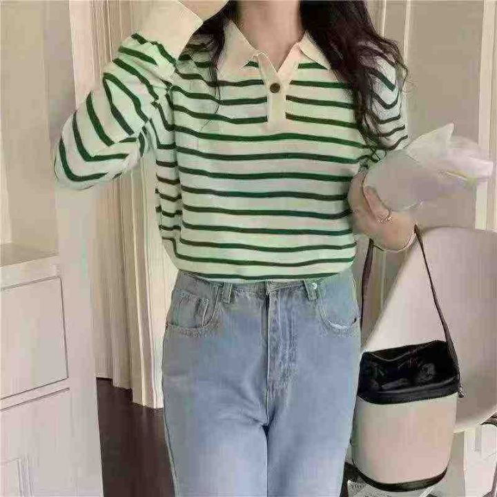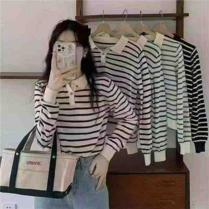 1150件早秋新款韩系宽松高级感撞色条纹百搭POLO领长袖针织毛衣,独立包装,均码面料柔软舒适,宽松款,全清5.8分+1