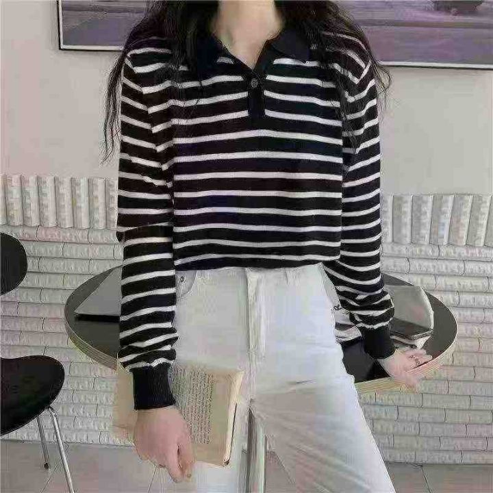 1150件早秋新款韩系宽松高级感撞色条纹百搭POLO领长袖...
