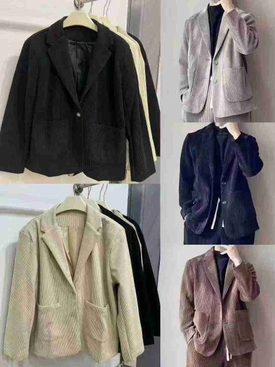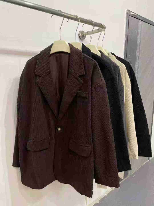 ☕️ 男装灯芯绒西装外套40件全清16.8元,宽松版M到5XL,非常厚实,全部有内衬,正品独立包装。图片三个整款三个色,轻熟风灯芯绒西装外套男款韩版高级感西服休闲男装呢子大衣