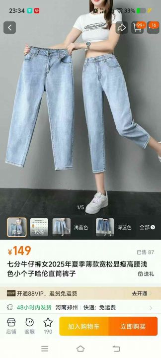 ☆7.8元,501-7款,女装春夏水洗棉弹力牛仔七分裤,S-4XL,418件,独立包装吊牌,全清7.8元,分货+0.5