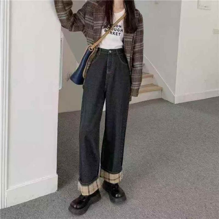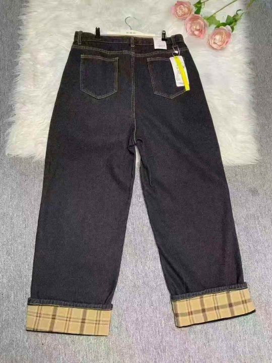 秋冬复古加绒加厚宽松显瘦牛仔裤女大码胖mm高腰直筒翻边阔腿长裤180件,独立包装带吊牌,尺码S~5XL全清福利价9.5