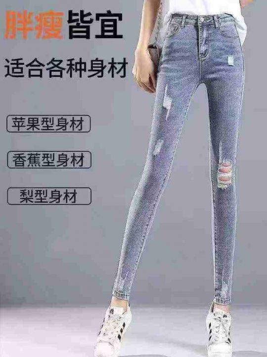 ☕️弹力破洞牛仔裤女新款高腰显瘦弹力紧身乞丐小脚铅...