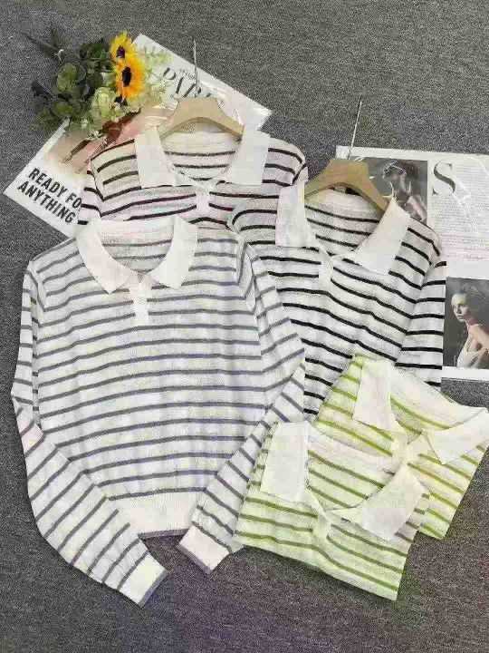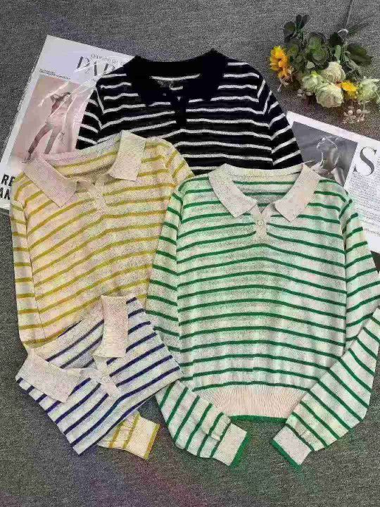 1150件早秋新款韩系宽松高级感撞色条纹百搭POLO领长袖针织毛衣,独立包装,均码面料柔软舒适,宽松款,全清5.8分+1