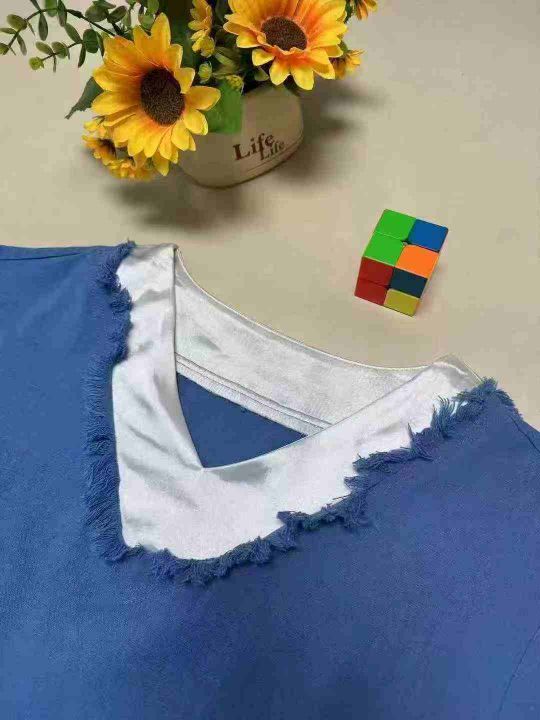 ❄️蓝白撞色v领流苏漂亮独特网红款短袖上衣,单款单色,品质好,有独立包装带吊牌,码数S- XL,数量640件左右,全清5.8元秒,分货➕1。