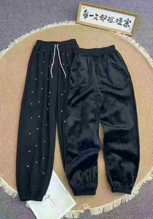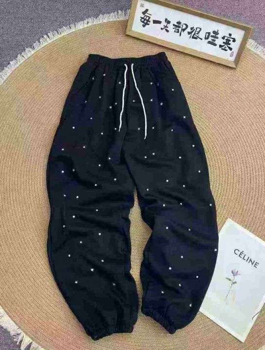 韩系重工镶钻满天星加绒束脚卫裤580件,秋冬清仓9.9,分货11.8,