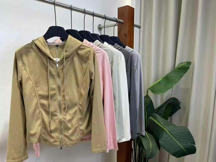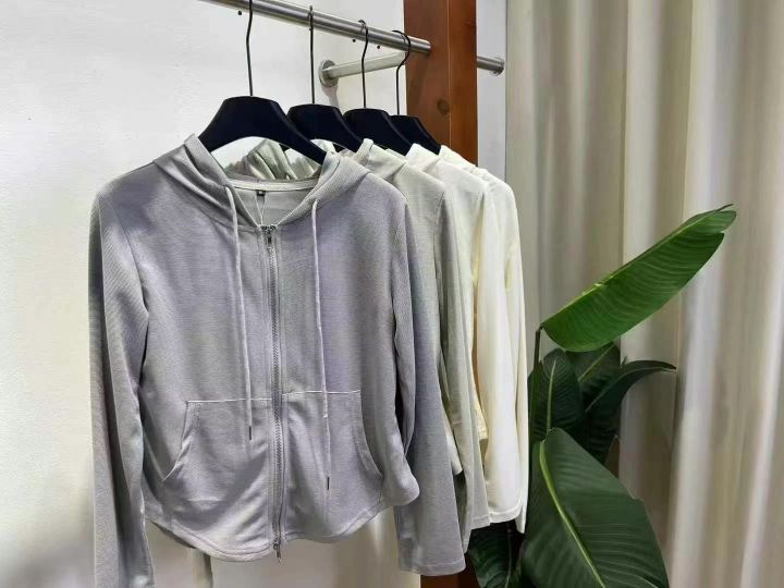 19.9高性价比新款连帽开衫系列来喽‼️修身连帽设计,显瘦显身材,云梯棉面料透气舒适,冰感防晒,耐磨不易变形,可以当瑜伽服,运动服,日常穿都百搭,品质贼好,双拉链设计款百搭不挑人,妥妥好卖,实体店姐妹们闭眼入,视频款配份30件起