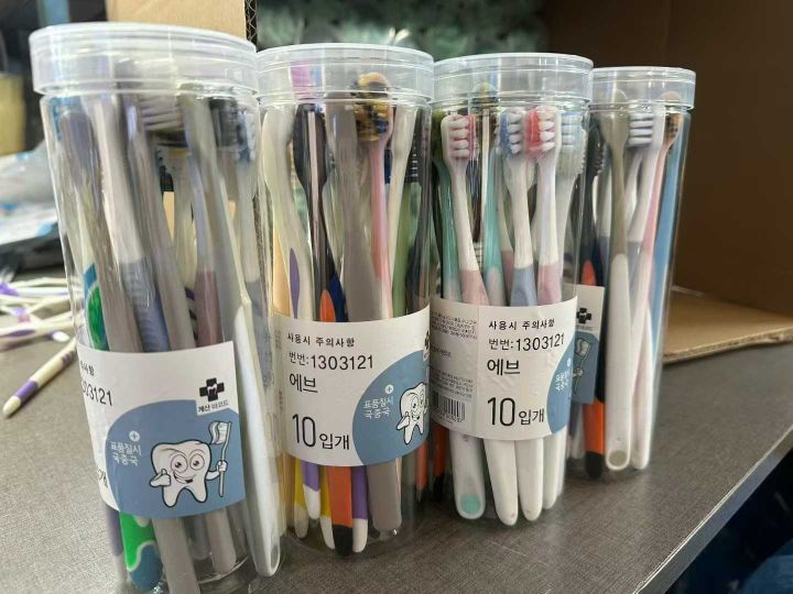 桶装杂款牙刷还有20多万支,一桶20支装,一箱100桶,...
